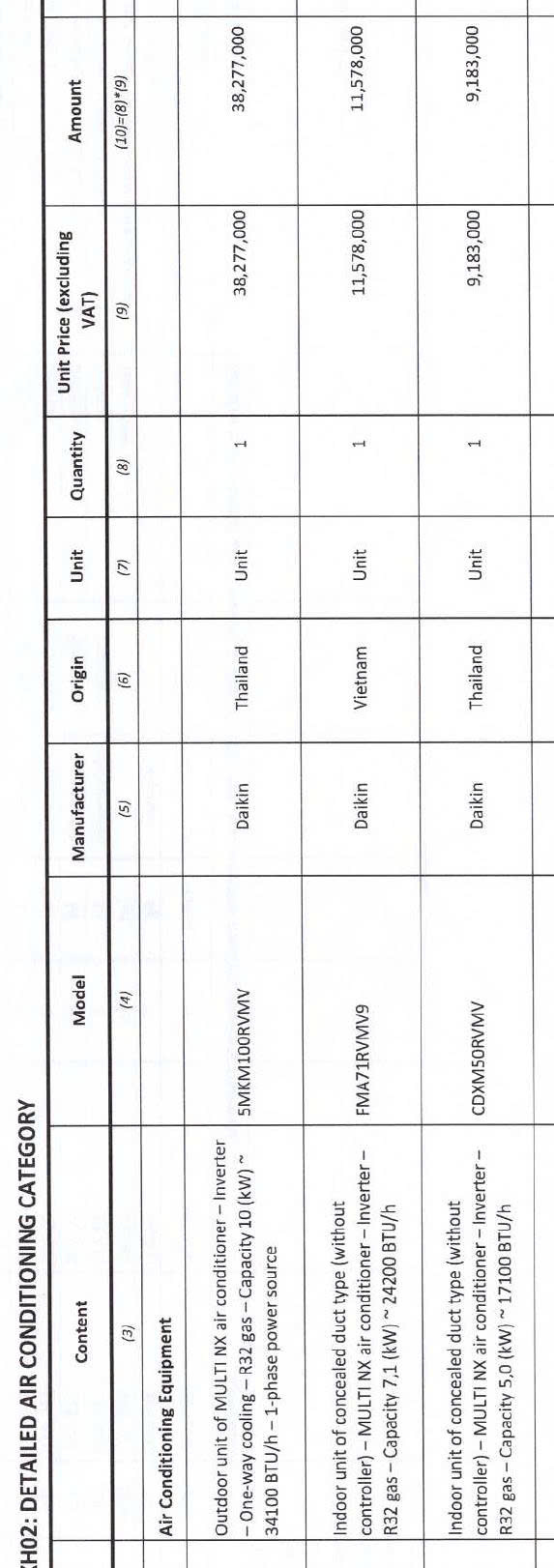 | Unit | Model | Capacity | Qty | Amount (VND) |