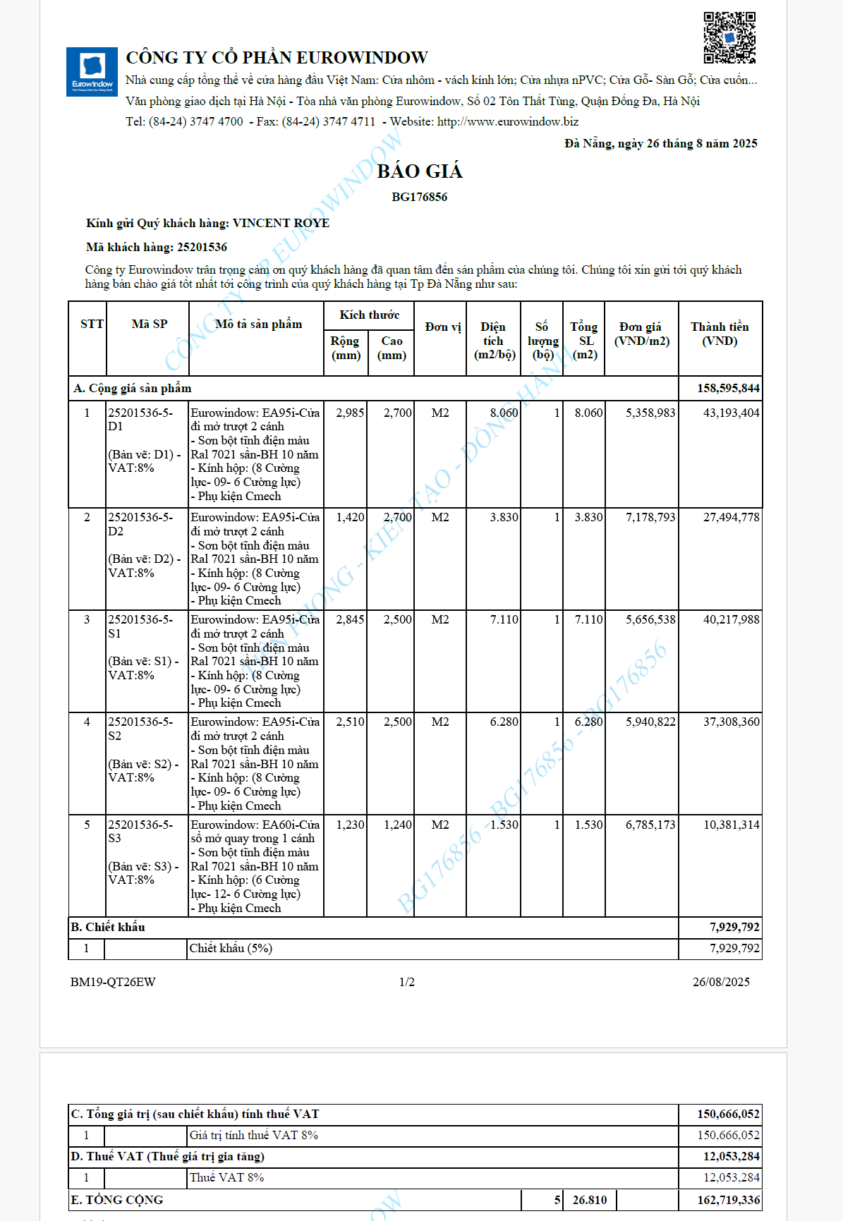 | Mẫu | Số lượng | Tổng cộng (VND) |